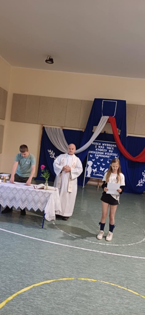 W liturgię słowa włączyli się pan Artur Markowski, a także uczennice Hania i Maja – Hania pięknie wykonała psalm, nadając liturgii szczególny charakter.