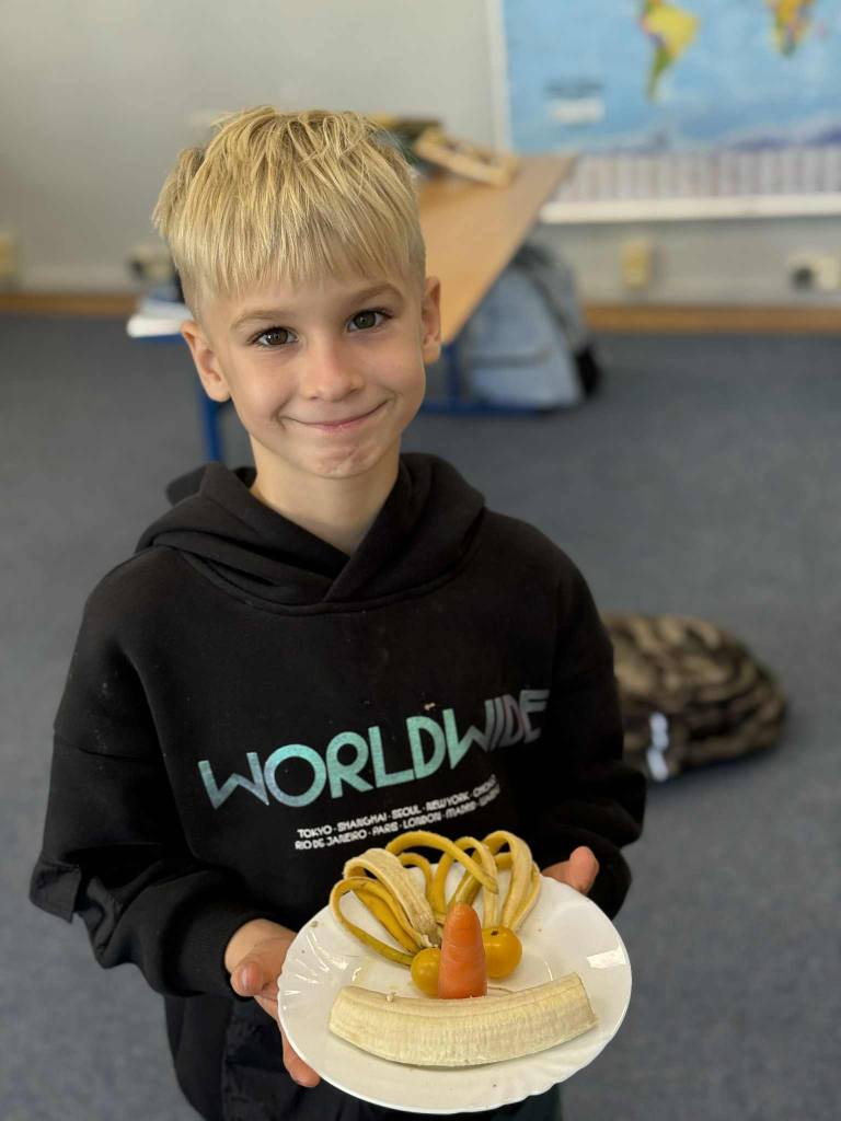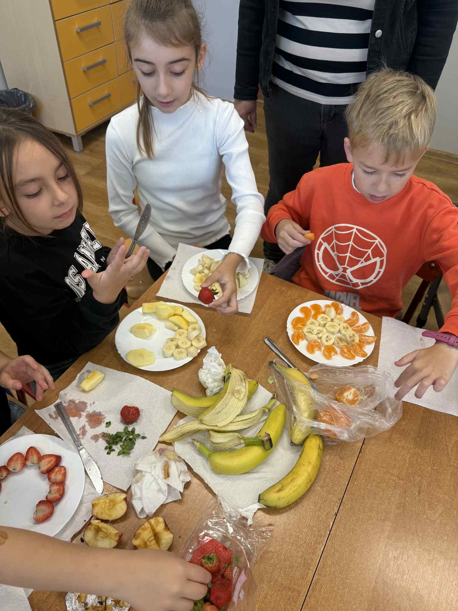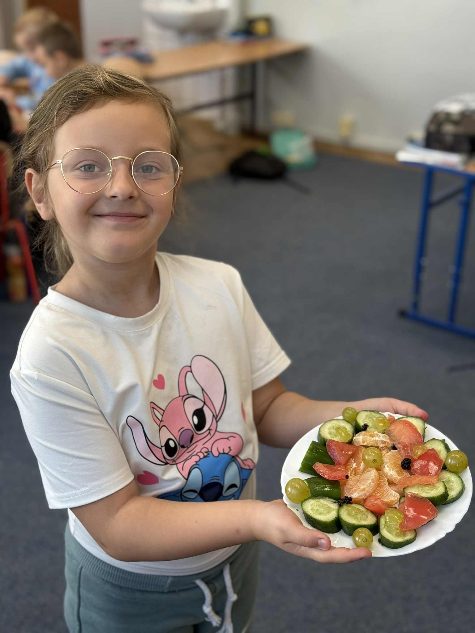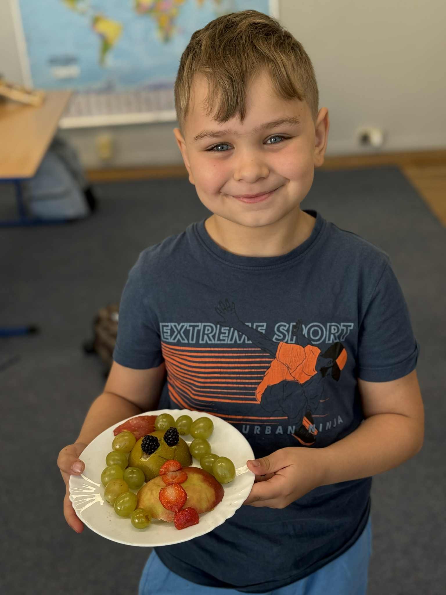 Na podsumowanie lekcji o zdrowym odżywianiu uczniowie klasy 2 przygotowali swoje własne, wyjątkowe kompozycje z owoców i warzyw. Było dużo kreatywności, kolorów i zdrowych smaków!