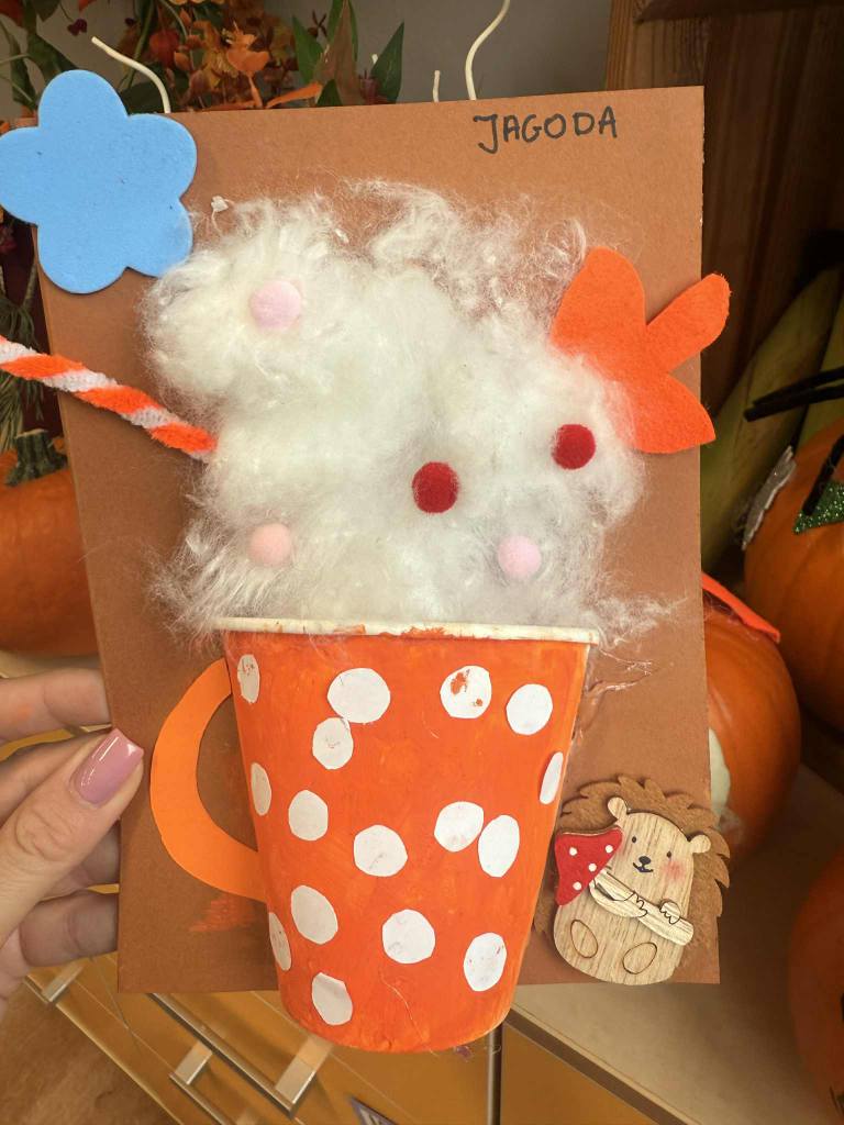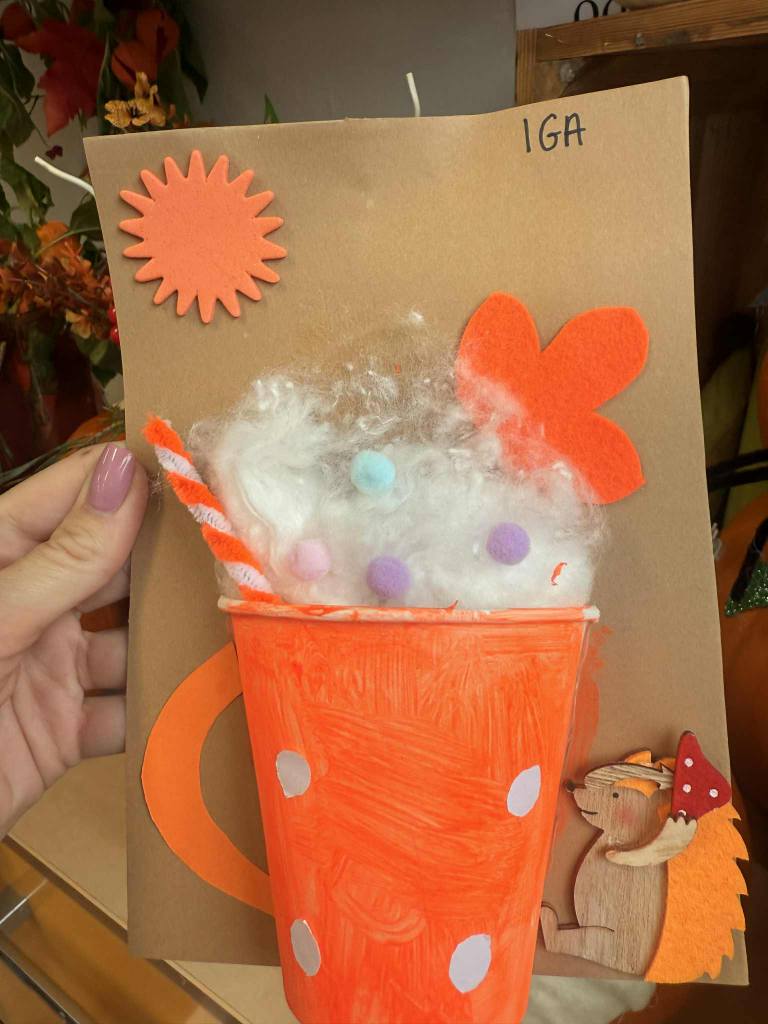 Nie zabrakło też sztuki na papierze – dzieci wykonały piękne prace plastyczne przedstawiające kubek ciepłego kakao z piankami i dodatkami.