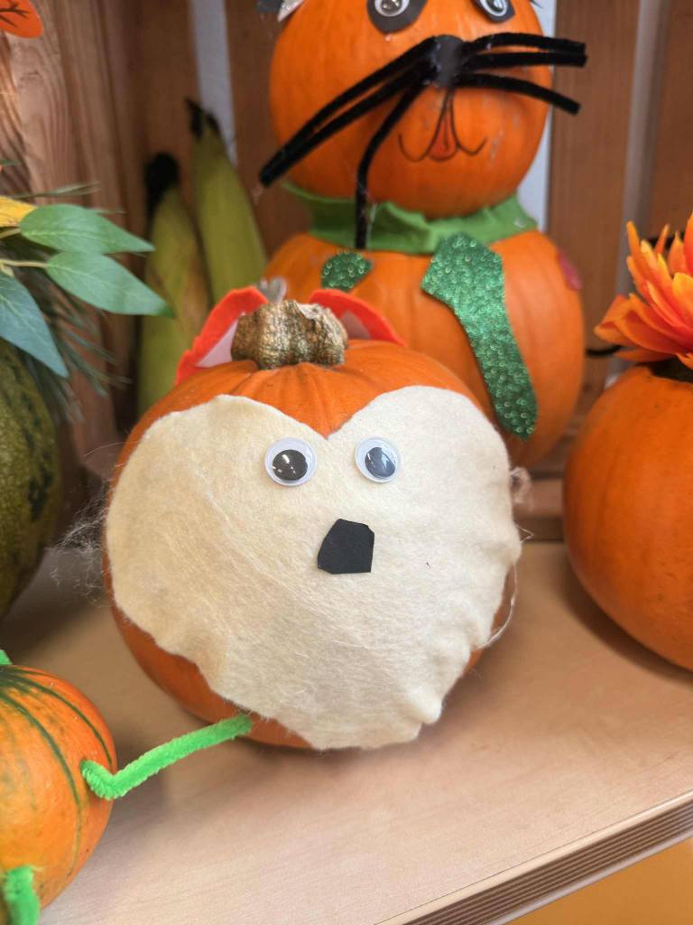 Na zakończenie udekorowaliśmy salę dyniami, wprowadzając ciepłą, jesienną atmosferę.