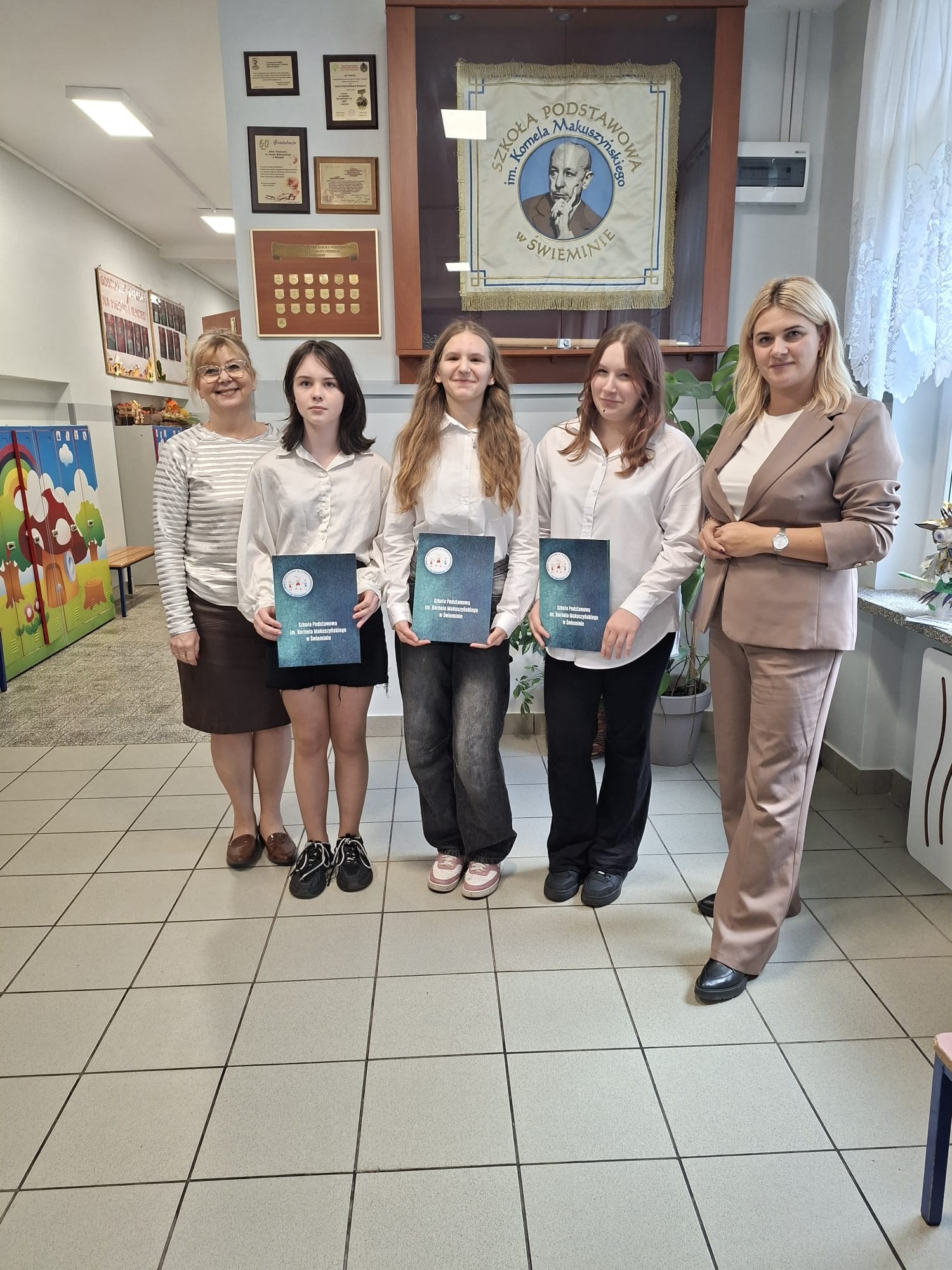Dyrektor szkoły, pani Renata Mankiewicz, uroczyście wręczyła nowo wybranym członkom Samorządu Uczniowskiego oficjalne zaświadczenia, gratulując im oraz życząc sukcesów w realizacji zaplanowanych działań.