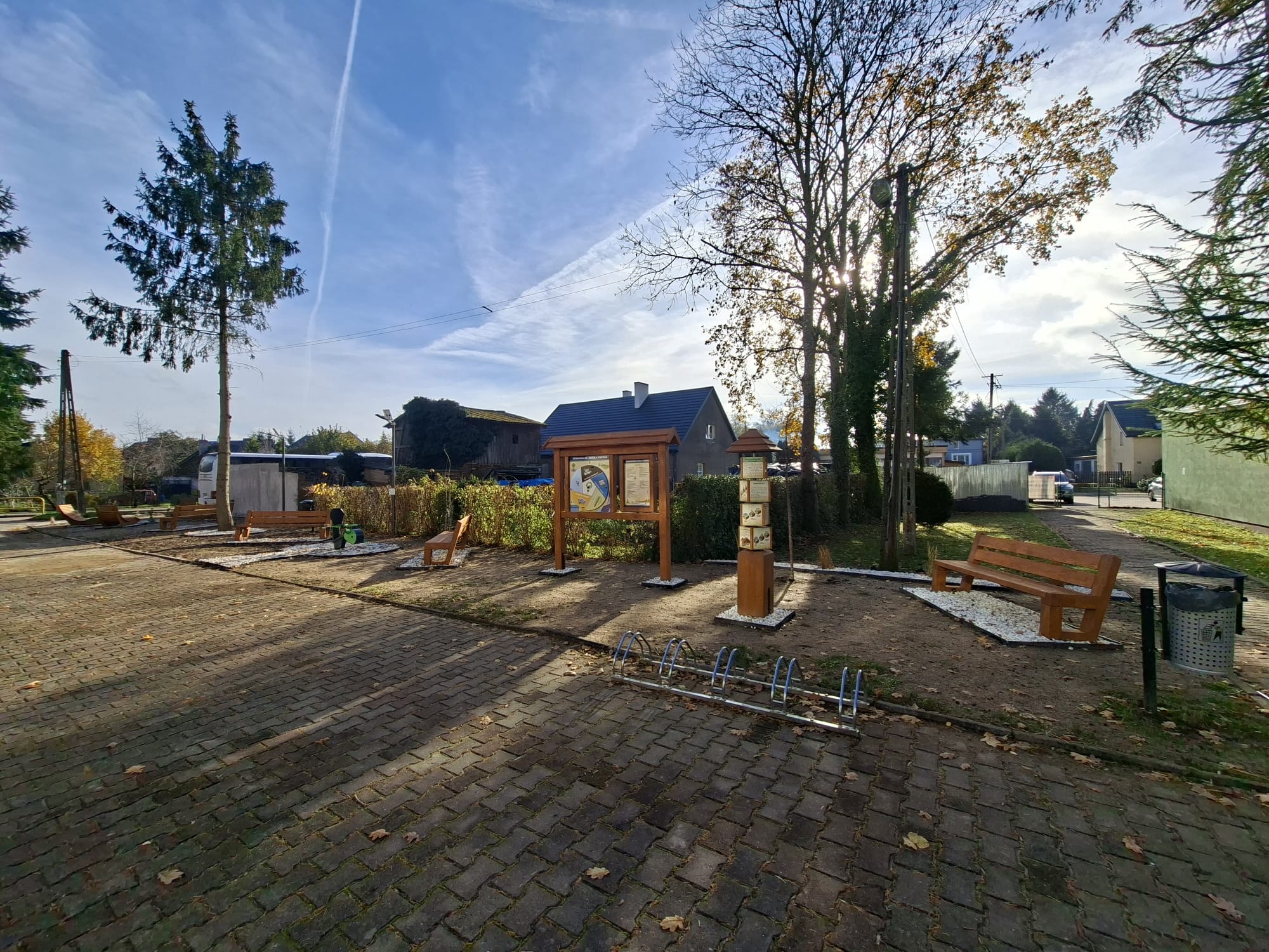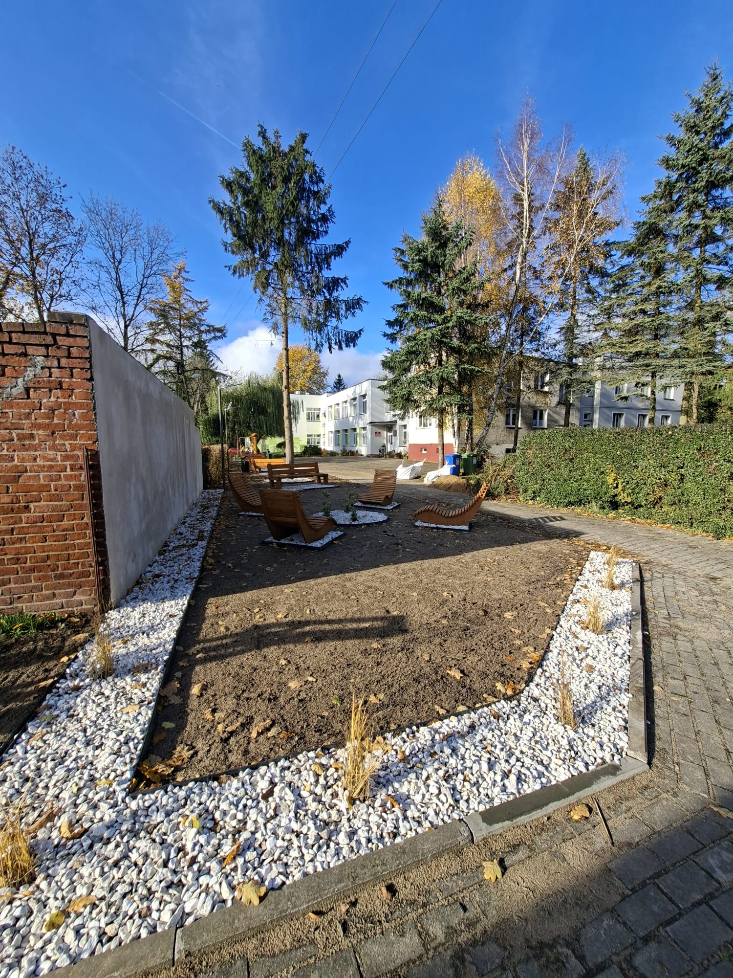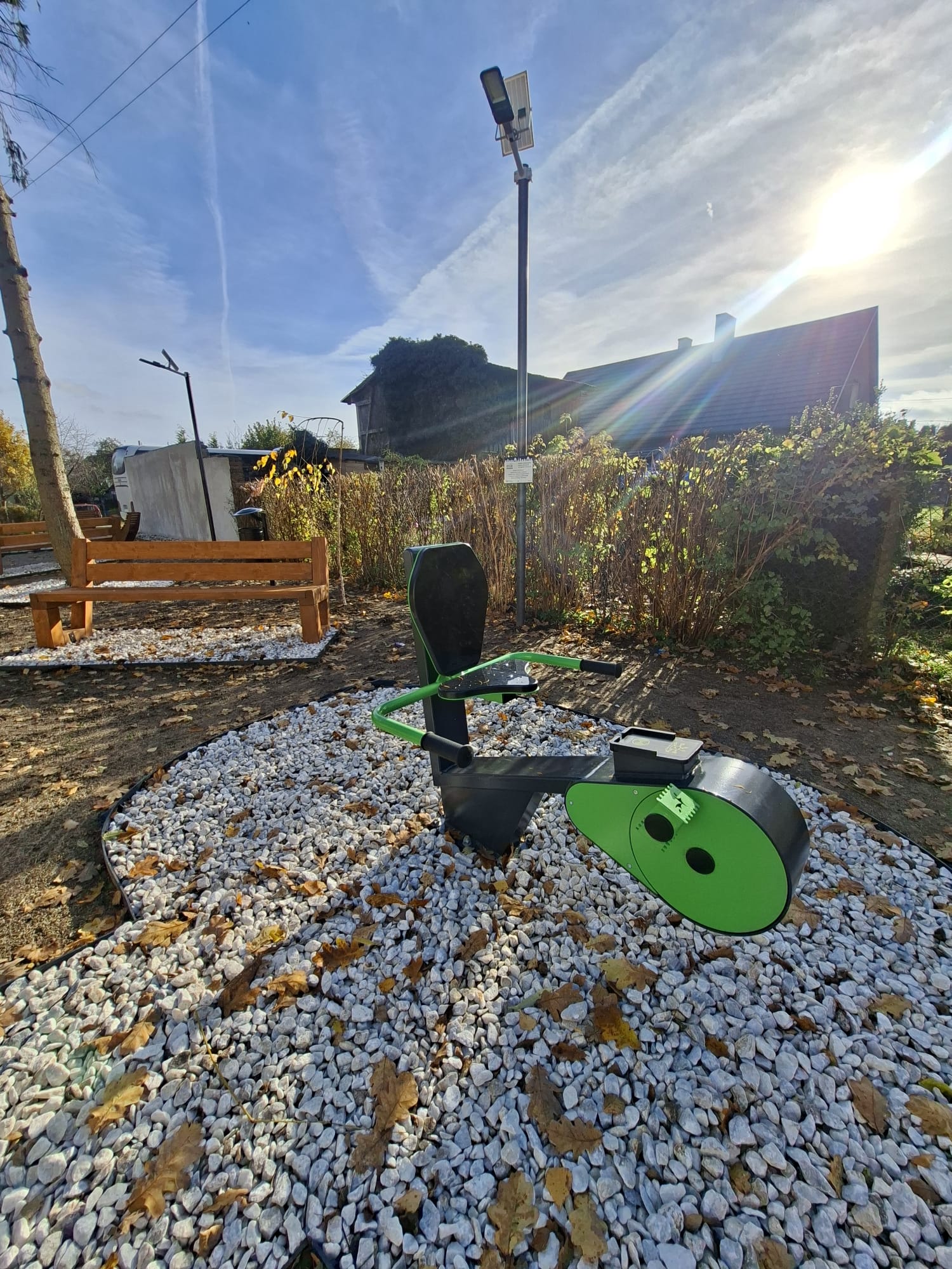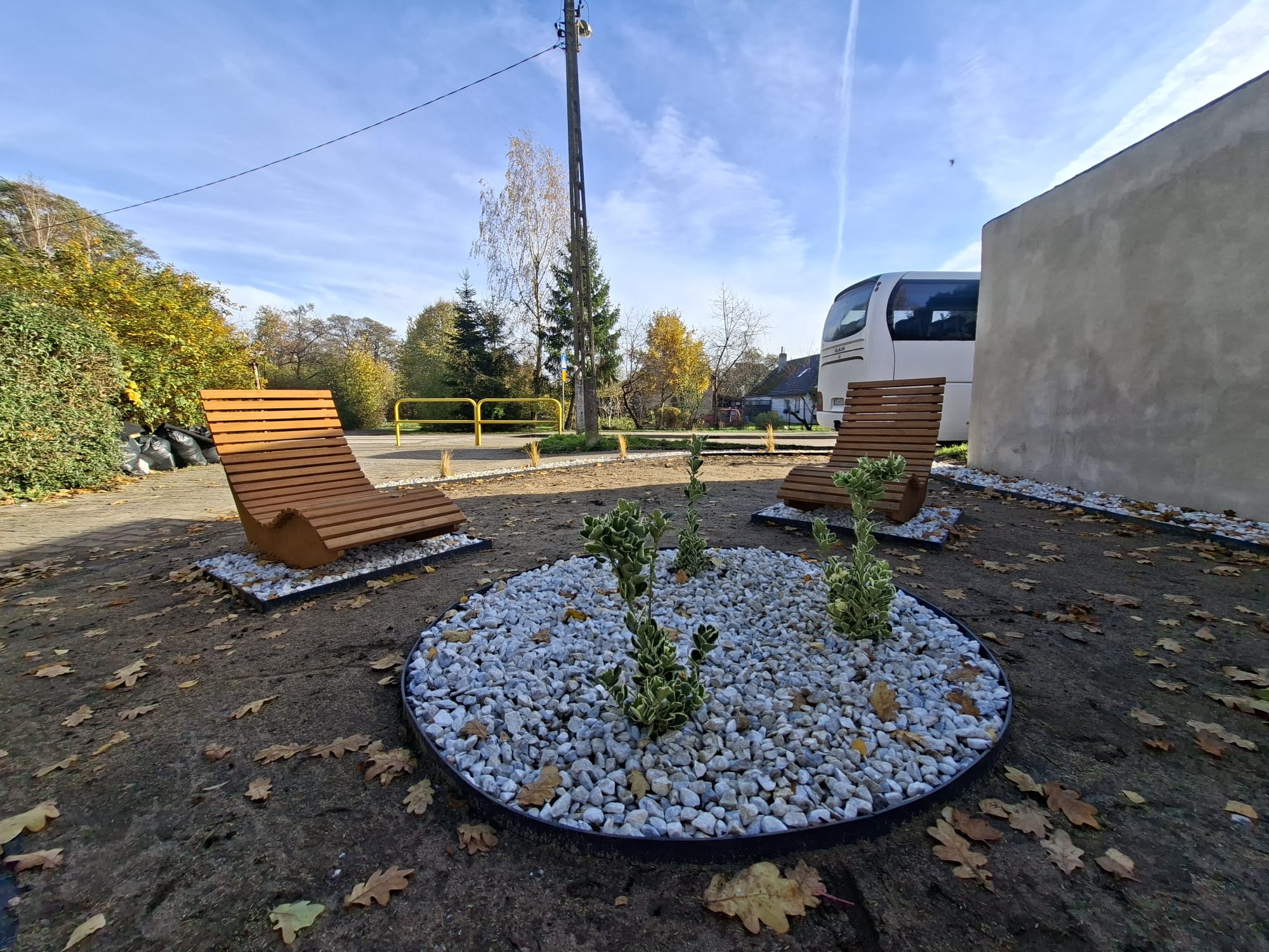 ✅ zainstalowano lampy solarne, ławki, kosz na śmieci oraz gry edukacyjne o OZE,