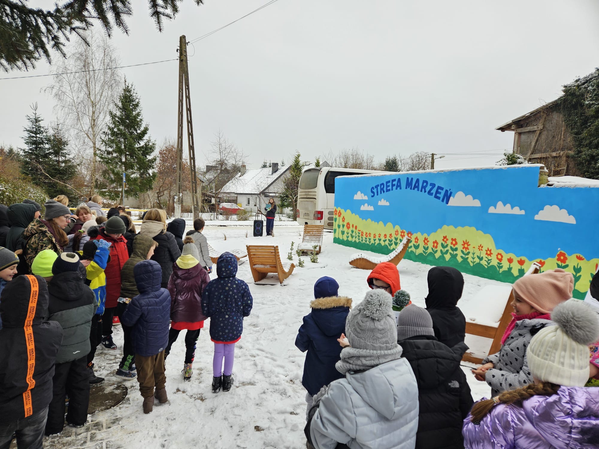 Dzisiejsze spotkanie było również okazją do obejrzenia wyjątkowej przestrzeni pn. STREFA MARZEŃ utworzonej przy szkole w ramach projektu realizowanego przez naszą szkołę oraz Stowarzyszenie „Przyszłość Świemina” pod nazwą „Wspólne działania elementem (prze)trwania” w programie regrantingowym „Aktywna Młodzież 2024–2026”, finansowanym ze środków Narodowego Instytutu Wolności – Centrum Rozwoju Społeczeństwa Obywatelskiego w ramach Rządowego Programu Fundusz Młodzieżowy 2022–2033, we współpracy z Operatorem Lokalnym – Stowarzyszeniem CREO.