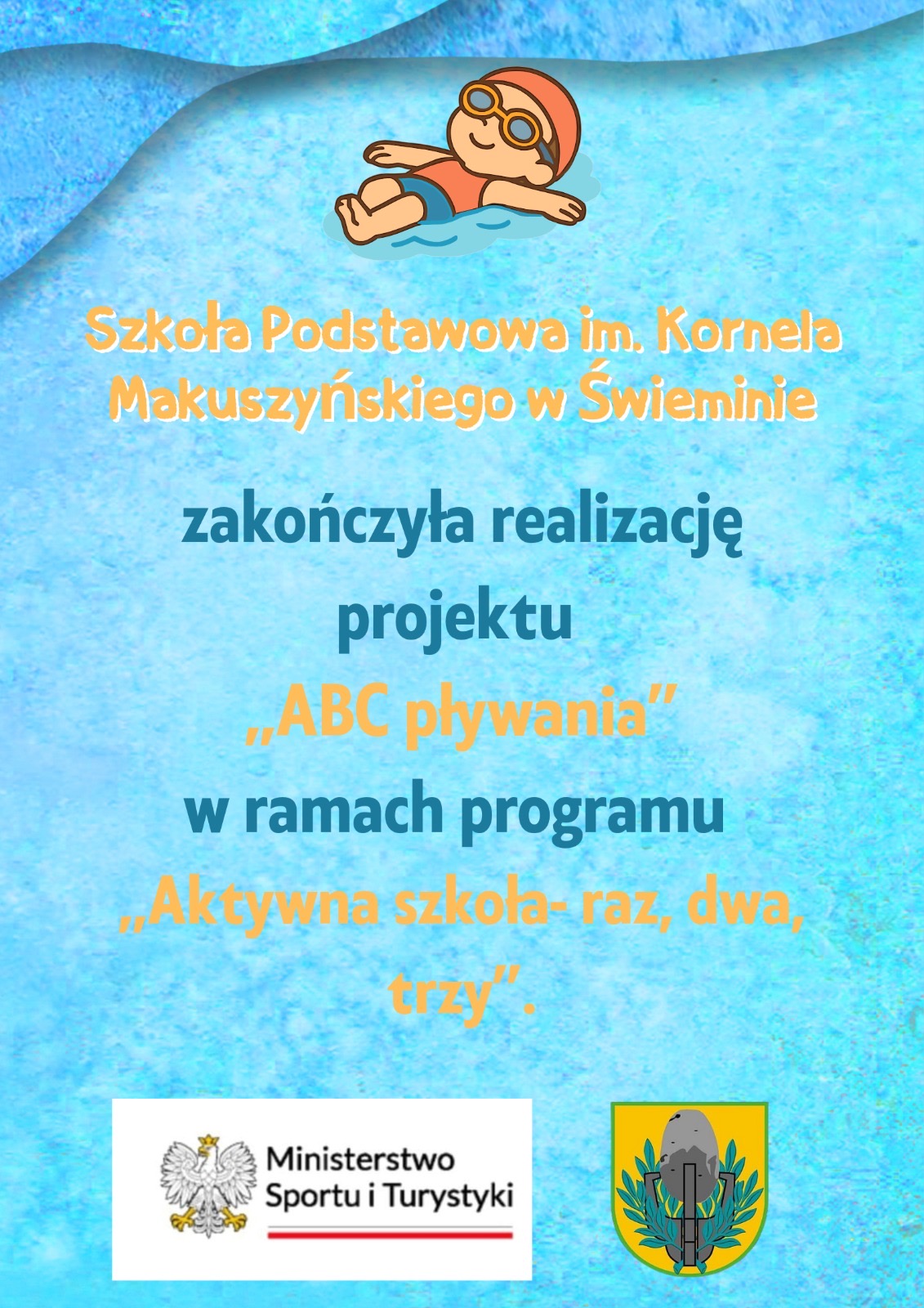 Szkoła Podstawowa im. Kornela Makuszyńskiego w Świeminie zakończyła realizację projektu „ABC pływania” w ramach programu „Aktywna szkoła – raz, dwa, trzy”.