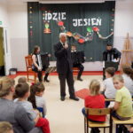 Już po raz drugi w tym roku szkolnym mieliśmy przyjemność spotkać się z prawdziwymi muzykami. Tym razem byli to wirtuozi akordeonu, wywodzący się z Koszalina. Zaprezentowali nam oni zróżnicowany program, oparty o klasyków akordeonu i nie tylko. Dzięki temu spotkaniu mieliśmy również okazję przypomnieć sobie o różnych rodzajach instrumentów. Miło nam było pochwalić się naszym szkolnym akordeonistą – Michałem Orzechowskim, który od trzech lat doskonali się w sztuce grania na tym trudnym instrumencie. Mamy nadzieję, że jego również będziemy mieli okazję oklaskiwać.